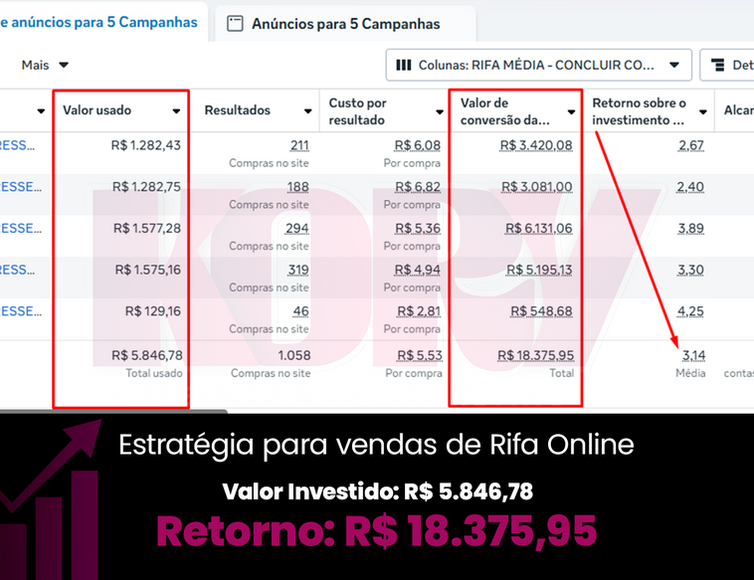 Relatórios personalizados com análise completa das métricas mais importantes (CPA, CTR, ROAS, custo por resultado etc.).